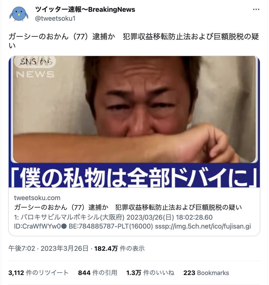 ガーシーのおかん逮捕か 警視庁の家宅捜索めぐり ツイートが拡散 根拠不明 発信や拡散に注意